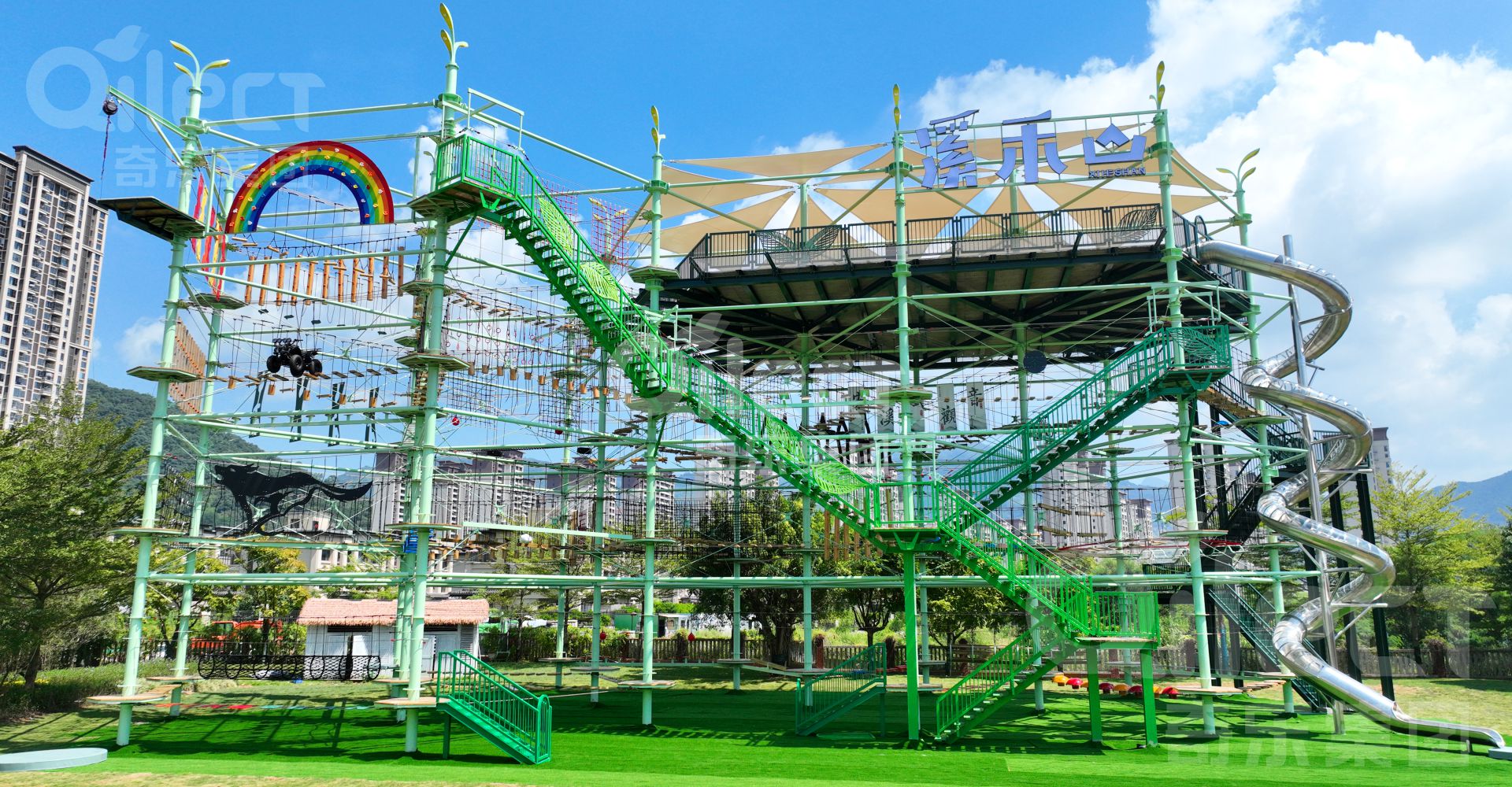 廣州奇樂游樂設(shè)備有限公司,總部坐落于粵港澳大灣區(qū)廣州黃埔區(qū),是國內(nèi)無動(dòng)力游樂設(shè)備領(lǐng)域知名的綜合服務(wù)商,業(yè)務(wù)涵蓋游樂設(shè)備咨詢、策劃設(shè)計(jì)、定制生產(chǎn)、售后及運(yùn)營指導(dǎo)為一體的全案服務(wù)。 公司多年來秉承 " 奇新必樂 樂無止境”的發(fā)展理念深耕國內(nèi)外無動(dòng)力親子家庭市場(chǎng),在沉浸式樂園、探險(xiǎn)樂園、戶外綜合拓展樂園以及叢林穿越等無動(dòng)力設(shè)備領(lǐng)域有著豐富的客戶案例和實(shí)戰(zhàn)經(jīng)驗(yàn)。公司擁有國家高新技術(shù)企業(yè)、國家貫標(biāo)企業(yè)、進(jìn)出口權(quán)著作權(quán)以及國家專利等多項(xiàng)認(rèn)證資格。 奇樂集團(tuán)成立至今,始終秉承“客戶至上,誠信經(jīng)營”的宗旨,并以創(chuàng)新的技術(shù)力量傲立于市場(chǎng)前沿,在同行中脫穎而出。 目前我們有著20000㎡的生產(chǎn)車間,先進(jìn)齊全的機(jī)械加工設(shè)備,完善的游樂設(shè)備檢測(cè)能力。主要產(chǎn)品包含;水晶塔、鉆石塔、兒童樂園、淘氣堡、蹦床、沙池、網(wǎng)紅秋千、不銹鋼滑梯、公園滑梯、兒童攀爬設(shè)備、水上游樂設(shè)備、兒童拓展設(shè)備、兒童公園游樂設(shè)備整體方案設(shè)計(jì)、生產(chǎn)制造等一系列兒童游樂設(shè)備產(chǎn)品。 近年來,憑借本公司誠實(shí)守信和良好經(jīng)營作風(fēng)及可靠的產(chǎn)品質(zhì)量,擁有一支愛崗敬業(yè)的游樂設(shè)備技術(shù)團(tuán)隊(duì),深受國內(nèi)外各界用戶的的廣泛認(rèn)同與歡迎,形成了良好的市場(chǎng)知名度與美譽(yù)度,銷售網(wǎng)絡(luò)遍及國內(nèi)各大中城市。